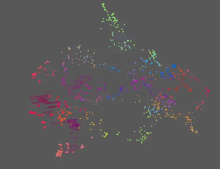 Using machine learning to automatically organize notes by meaning and exploring them in a browser 3D interface