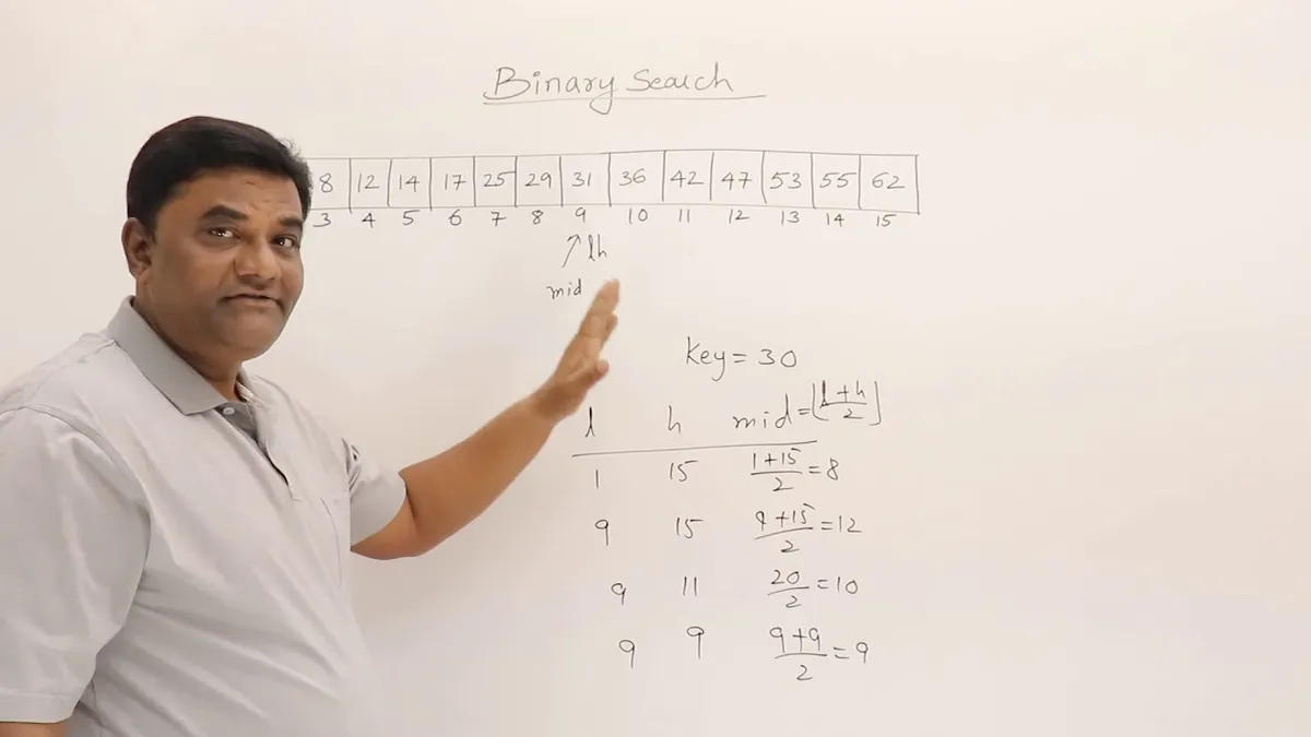 {{youtube-timestamp 163}} The number 42 which we’re searching for is greater than 29, so the new low becomes mid + 1, which is 8;