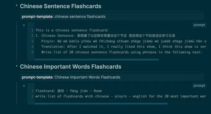 I’ve also been using YouTube for language learning and studying Chinese. Understanding native content in a foreign language is extremely challenging, so before I watch the video, I often download the video captions and run some GPT-3 commands. I can get a summary of the video in English, identify important phrases, extract uncommon words, and create flashcards based on the video. Then, when I watch the video, I understand much more.
